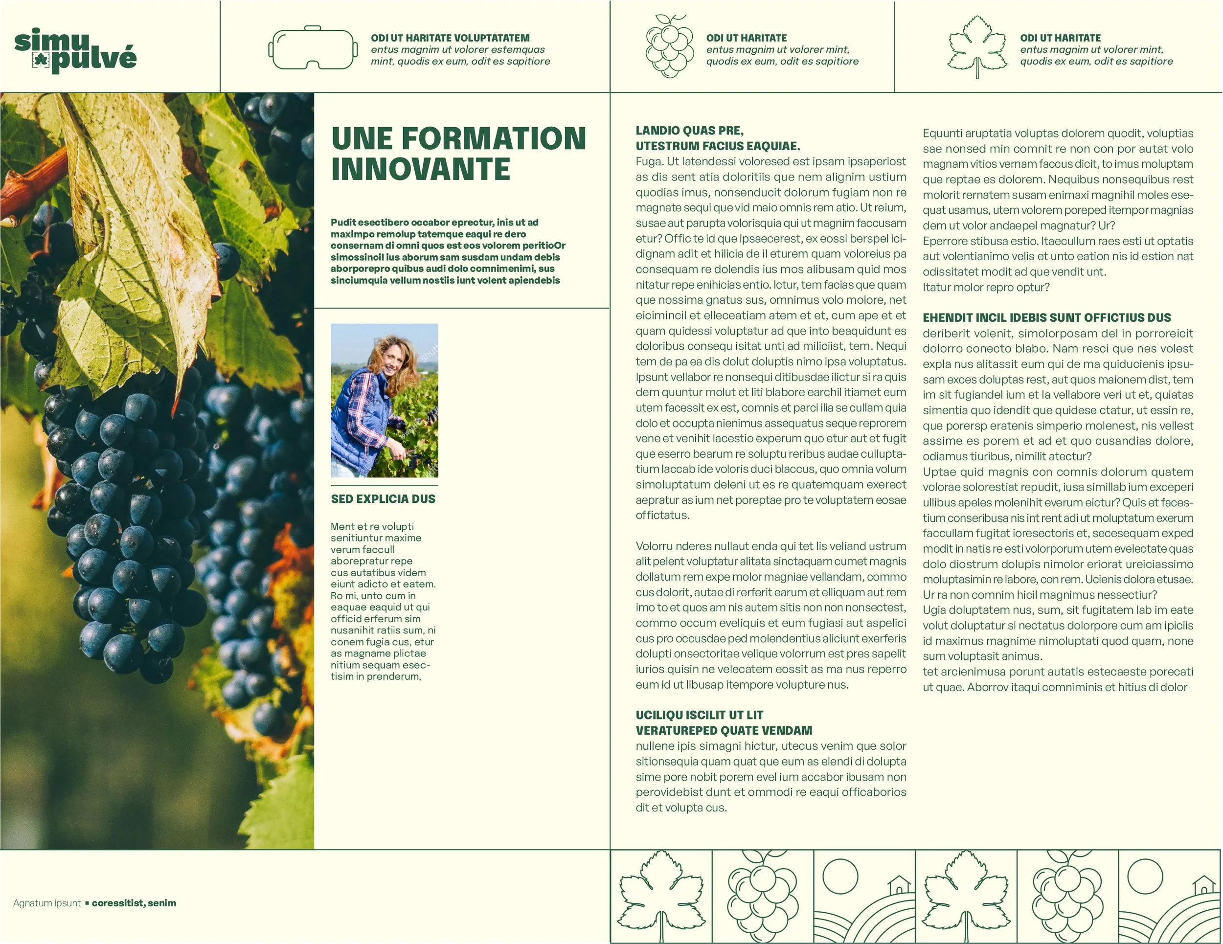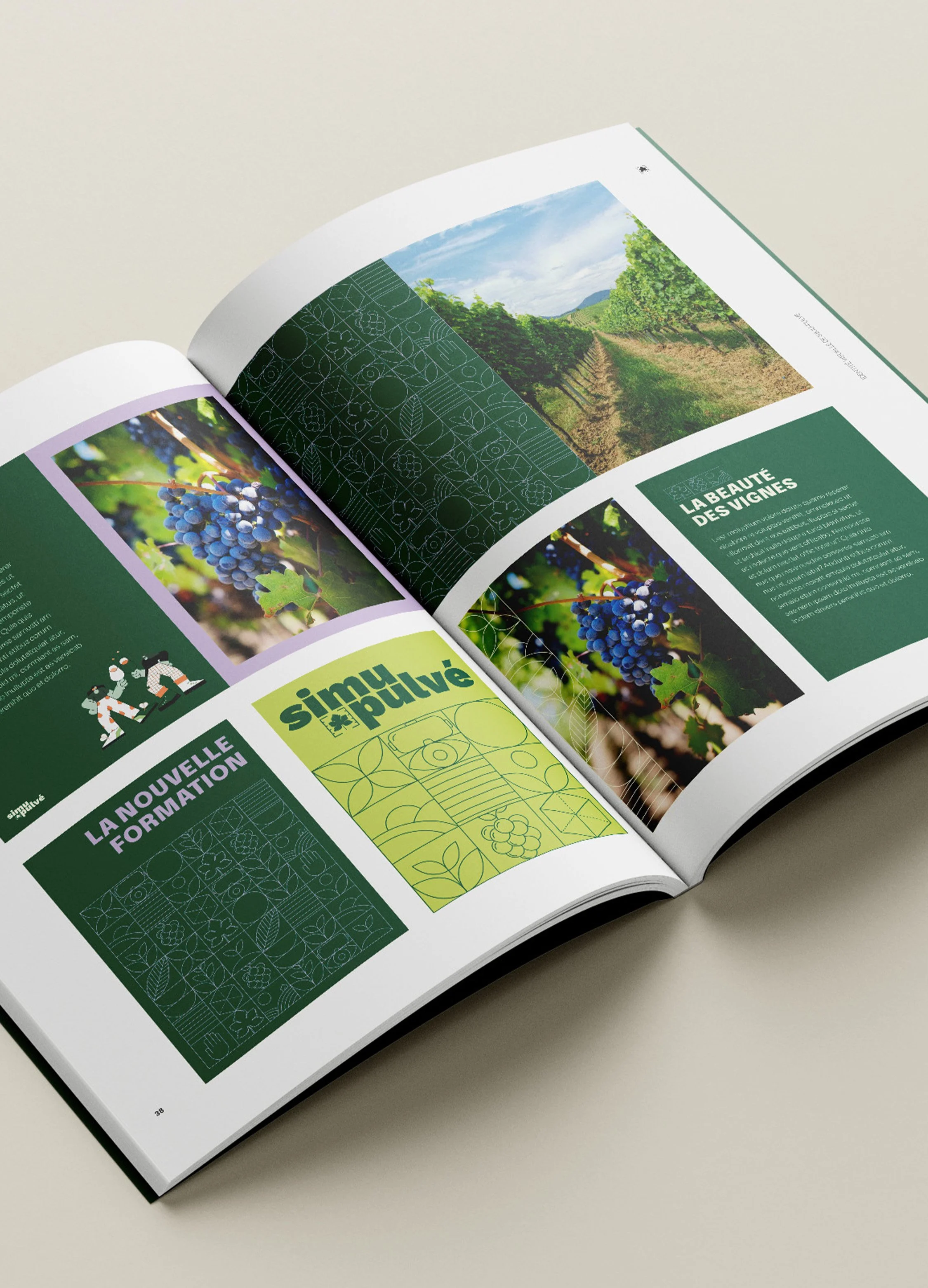 J'ai été sollicité pour concevoir l'identité visuelle de Simu-pulvé. J'ai ainsi créé un logotype, accompagné de ses déclinaisons, en cohérence avec la stratégie définie en amont. Mon travail a également inclus la sélection des typographies, l'élaboration d'une palette de couleurs, la création d'éléments graphiques, ainsi que la définition de principes de composition et d'iconographie. Un guide détaillé de l'identité de marque a été fourni, afin que les équipes puissent facilement l'appliquer sur différents supports et de manière cohérente.