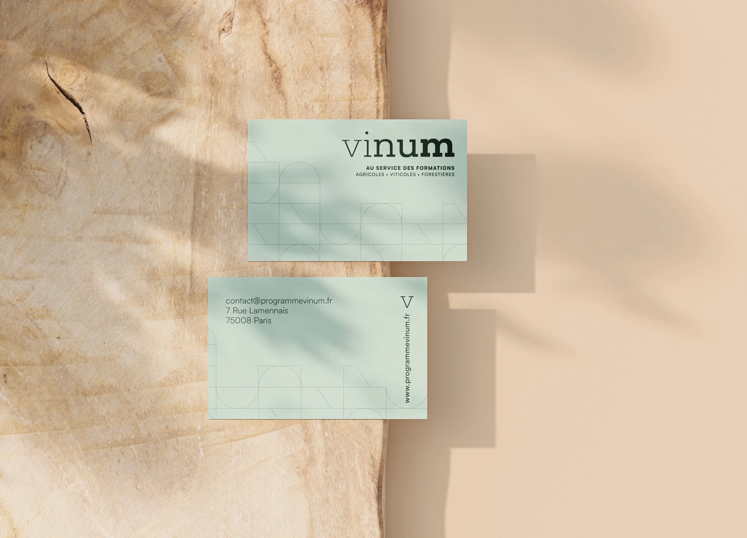 J'ai été contactée pour réaliser l'identité visuelle de Vinum. Un logotype et des variantes ont été réalisés en accord avec la stratégie définie auparavant. J'ai également identifié les typographies, établi une gamme chromatique, défini des habillages graphiques ainsi que des principes de composition et d'iconographie. Un manifeste détaillé de la marque, expliquant l'utilisation de l'identité visuelle a été fourni afin que tous les employés puissent l'utiliser facilement et rapidement pour différents supports.