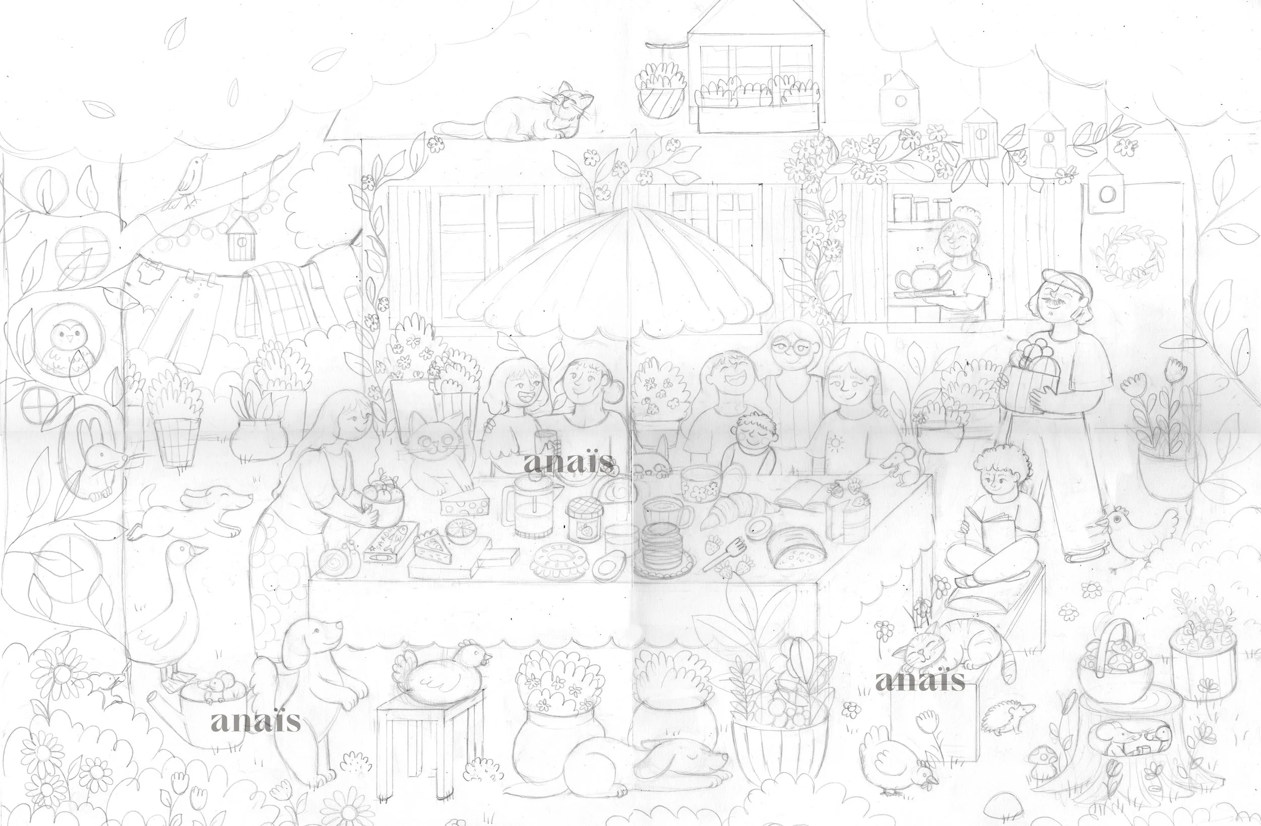 Colorée et joyeuse, cette illustration '“Goûter fleuri” vous transporte dans un univers fleuri et printanier. La famille et les copains se retrouvent autour d’un goûter au soleil, entourés de fleurs et de petits animaux en tout genre. Un visuel qui sent le café chaud, les fleurs fraîches et la bonne humeurCe puzzle sortira dans les prochains mois.